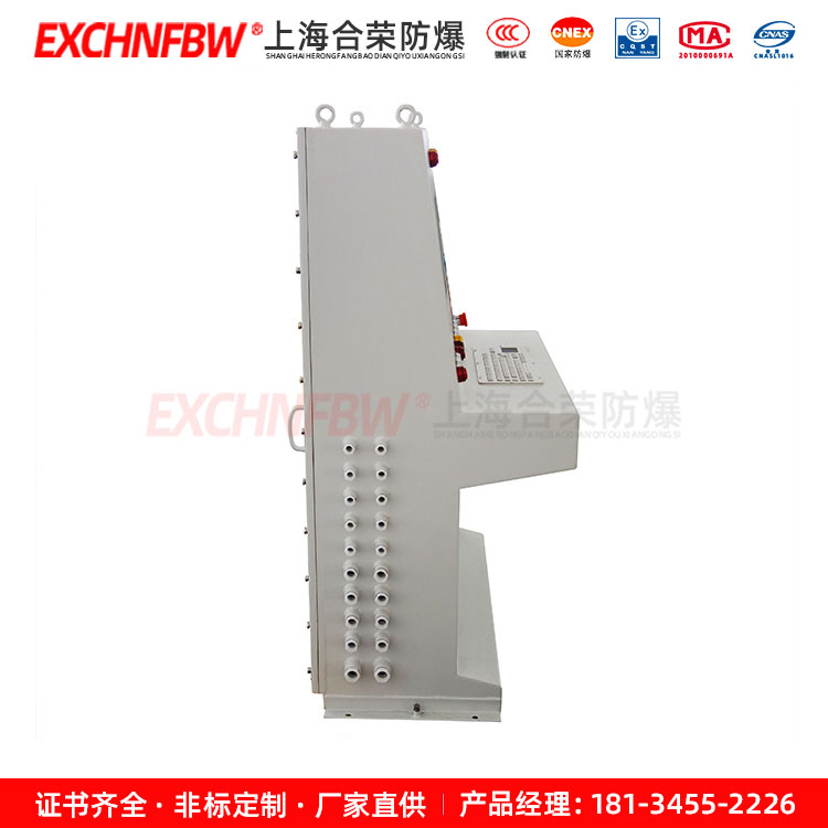 2. 本產(chǎn)品為復(fù)合型防爆結(jié)構(gòu),開關(guān)箱采用隔爆型結(jié)構(gòu),母線箱及接線箱采用增安型結(jié)構(gòu);