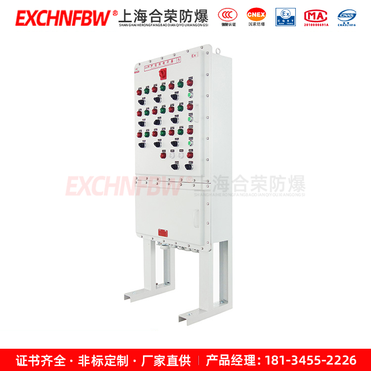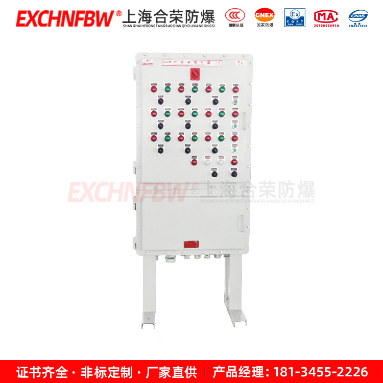 █ B、 非標(biāo)配電箱:外殼采用鋼板焊接成型,表面噴塑。分主腔和接線腔,均采用隔爆型結(jié)構(gòu),內(nèi)可選裝高分?jǐn)鄶嗦菲鳌⒔涣鹘佑|器、熱繼電器、控制按鈕、信 號燈等元 件,通過操作殼蓋上的手柄實(shí)現(xiàn)分合,動作性能可靠,并設(shè)有指示燈。進(jìn)出線采用鋼管或電纜布線均可,進(jìn)出線口方向及內(nèi)部元件可由用戶要求而定。