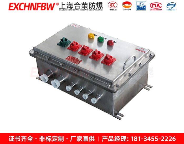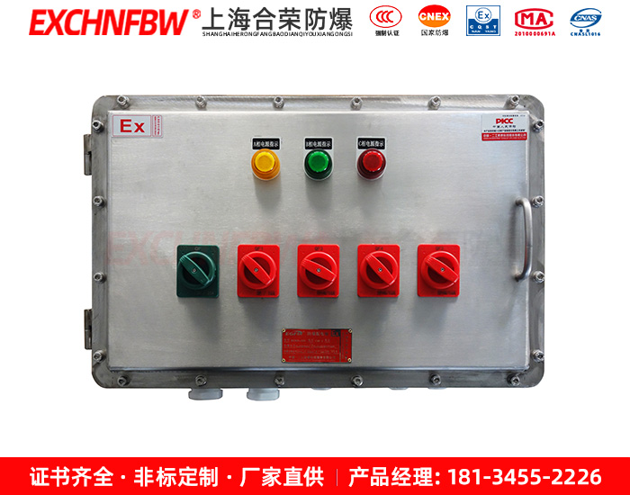 2. 本產(chǎn)品為復(fù)合型防爆結(jié)構(gòu),開關(guān)箱采用隔爆型結(jié)構(gòu),母線箱及接線箱采用增安型結(jié)構(gòu);