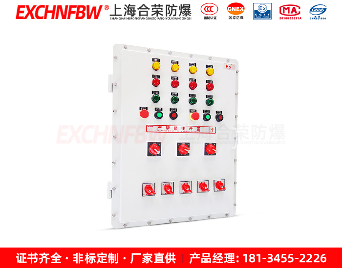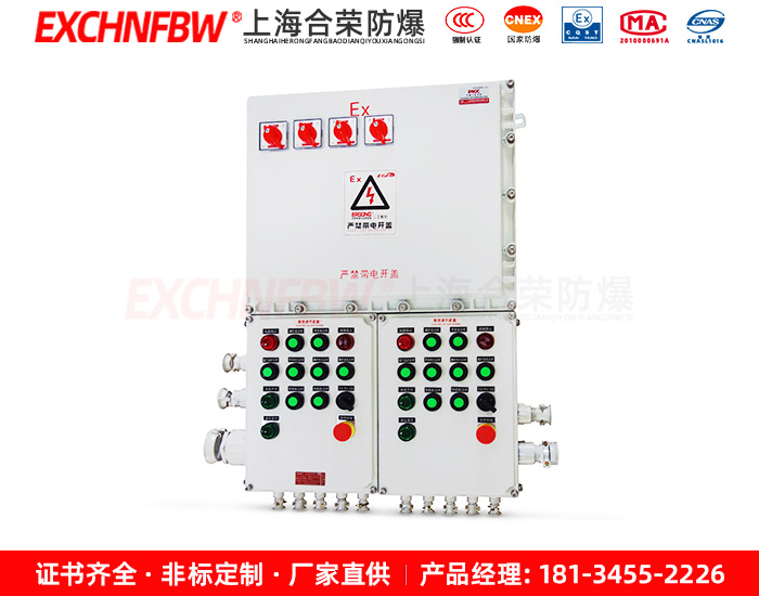 2. 本產(chǎn)品為復(fù)合型防爆結(jié)構(gòu),開關(guān)箱采用隔爆型結(jié)構(gòu),母線箱及接線箱采用增安型結(jié)構(gòu);