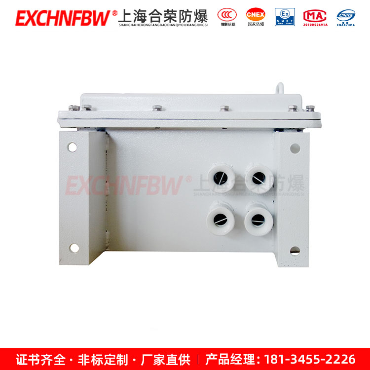 █ A、外殼采用鑄鋁合金壓鑄成型,表面噴塑。主腔采用隔爆型結(jié)構(gòu),接線腔增安型結(jié)構(gòu)。內(nèi)可選配裝斷路器、交流接觸器、熱繼電 器、變壓器、熔斷器、溫控 儀數(shù)顯表等普通低壓元件。Ex防爆控制按鈕、信號燈、轉(zhuǎn)換開關(guān)等。配電箱采用模塊化設(shè)計,各種回路可以自由組合,電器元件選型可 由用戶而定,其結(jié)構(gòu)緊 湊、外形美觀。進出線采用鋼管或電纜布線均可,進出線口方向可由用戶要求而定。