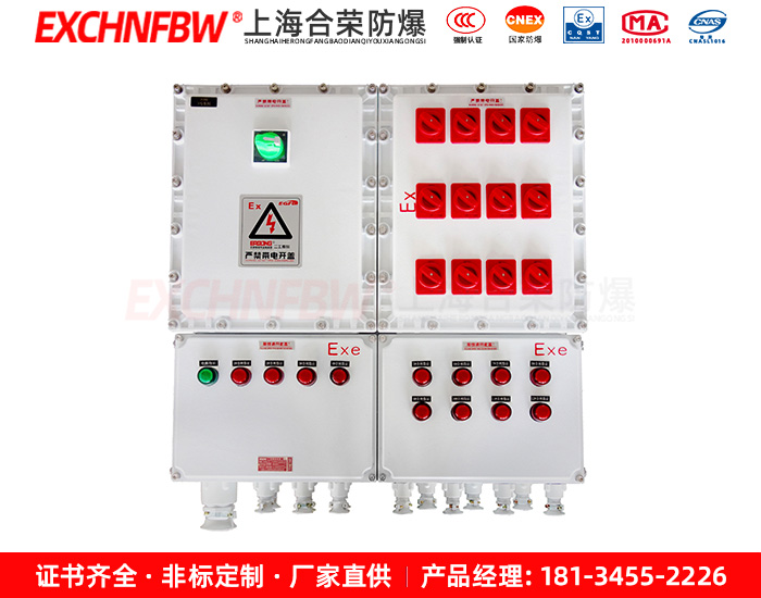 2. 本產(chǎn)品為復(fù)合型防爆結(jié)構(gòu),開關(guān)箱采用隔爆型結(jié)構(gòu),母線箱及接線箱采用增安型結(jié)構(gòu);