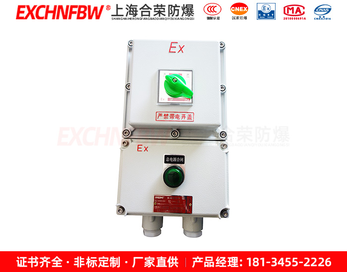 2. 本產(chǎn)品為復(fù)合型防爆結(jié)構(gòu),開關(guān)箱采用隔爆型結(jié)構(gòu),接線箱采用增安型結(jié)構(gòu);