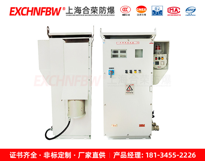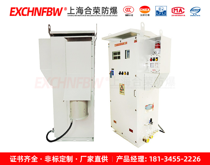 采用介質(zhì)隔離點(diǎn)燃源的防爆措施。即:把用戶所用的電器元件安裝在一個(gè)充滿正壓潔凈氣體的柜體內(nèi),使外部環(huán)境中易燃易爆的混合性氣體無法接觸到電器元件在正常工作時(shí)所產(chǎn)生的電火花或危險(xiǎn)溫度,從而達(dá)到電器防爆的目的。