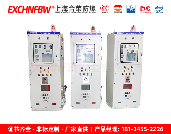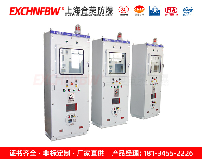 采用介質(zhì)隔離點燃源的防爆措施。即:把用戶所用的電器元件安裝在一個充滿正壓潔凈氣體的柜體內(nèi),使外部環(huán)境中易燃易爆的混合性氣體無法接觸到電器元件在正常工作時所產(chǎn)生的電火花或危險溫度,從而達到電器防爆的目的。
