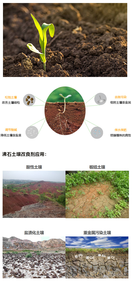將重金屬離子固化在沸石孔腔內(nèi),通過分解和固化作用降低其危害,避免了農(nóng)作物吸收重金屬污染物質(zhì)并向食物鏈轉(zhuǎn)移的風(fēng)險。
